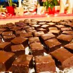 9. Teigplatte erkalten lassen und in 2.5×2.5 cm Grösse Würfel schneiden.