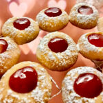 So lecker gefüllt mit Erd – und Himbeermarmeladeund mürbe, dass sie auf der Zunge zergehen. Und sie gelingen, ohne dass sich die Mulde wieder schliesst.