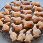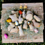 - Teig auf bemehlter Arbeitsfläche ca.1 cm dünn ausrollen und Ostergebäck ausstechen. Diese auf ein mit Backpapier ausgelegtes Backblech legen und bei 160 Grad Umluft ca 12 – 15 Minuten backen.